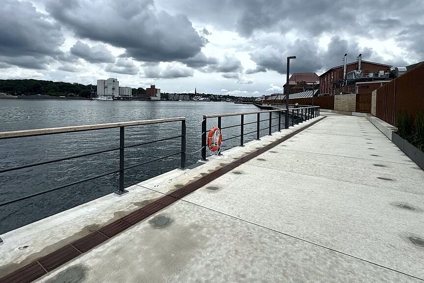 Man kann wohl davon ausgehen, dass diese Sprachregelung auch im Förderantrag ans Land auftauchte, die Promenade wurde also ausdrücklich als kombinierter Rad- und Gehweg vom Land gefördert. Eine Sperrung für Radfahrende ginge vermutlich mit Rückzahlungen einher, das wird sich die Stadt aber angesichts ihrer Haushaltssituation gut überlegen. Von daher unsere Empfehlung: Genießt die tolle Promenade zu Fuß und per Rad, nehmt Rücksicht und dann läuft das schon.