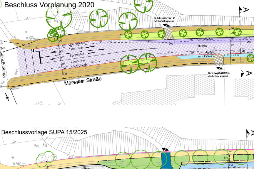 Auch zukünftig setzt sich der kuriose Wandel in der Verkehrsplanung fort: Am kommenden Dienstag wird die Stadt im SUPA 15/2025 versuchen, sich mit einer weiteren Minimallösung davon zu stehlen: Für den sogenannten „Umbau“ der Mürwiker Straße zwischen Lautrupsbach und Osterallee entschied sich die Politik in der Vorplanung 2020 für eine Variante mit Fahrradschutzstreifen, doch der Vorschlag, den die Verwaltung diesmal vorlegt gleicht einer Bankrott-Erklärung: Es soll alles beim Alten bleiben, Schutzstreifen werden nicht geplant, es sollen lediglich sogenannte „Piktogrammketten“ auf die Straße gepinselt werden. Das sind die bekannten Fahrradsymbole, die man auch an anderen Stellen im Stadtgebiet finde.