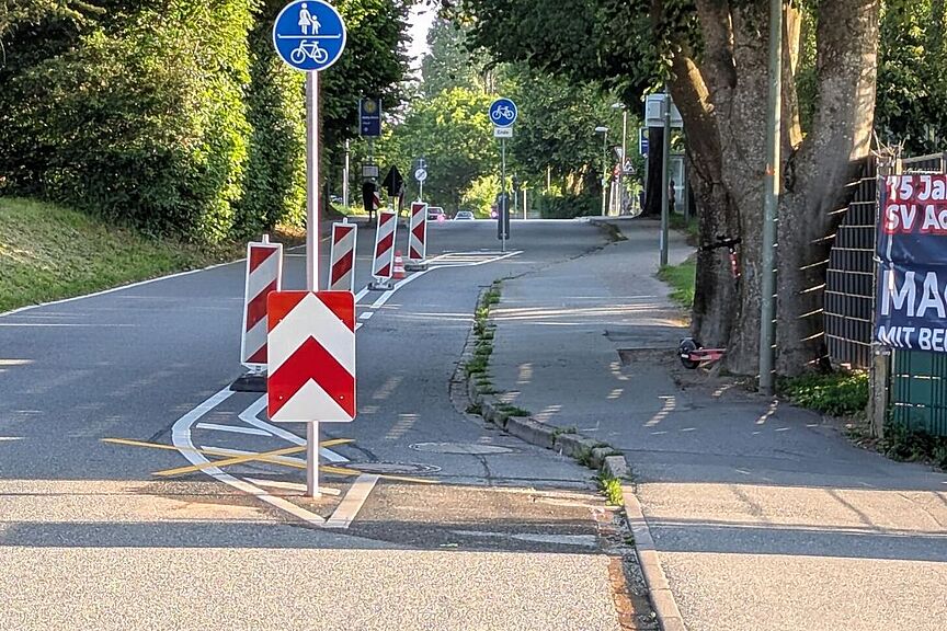 Vergangene Woche kontaktierte uns ein Radfahrer, der unter den noch abgedeckten Schildern das Schild 240 entdeckte: Ein benutzungspflichtiger, kombinierter Rad- und Gehweg. Es ist der Klassiker unter den konfliktträchtigsten Verkehrsführungen und das, obwohl man hier eigentlich perfekt getrennte Wege hat.